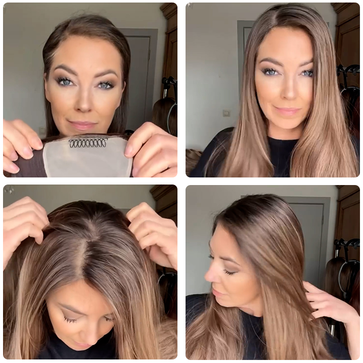 • Straight Natural Hair Topper For Women High quality Hairstyle clips in own hair blends perfectly