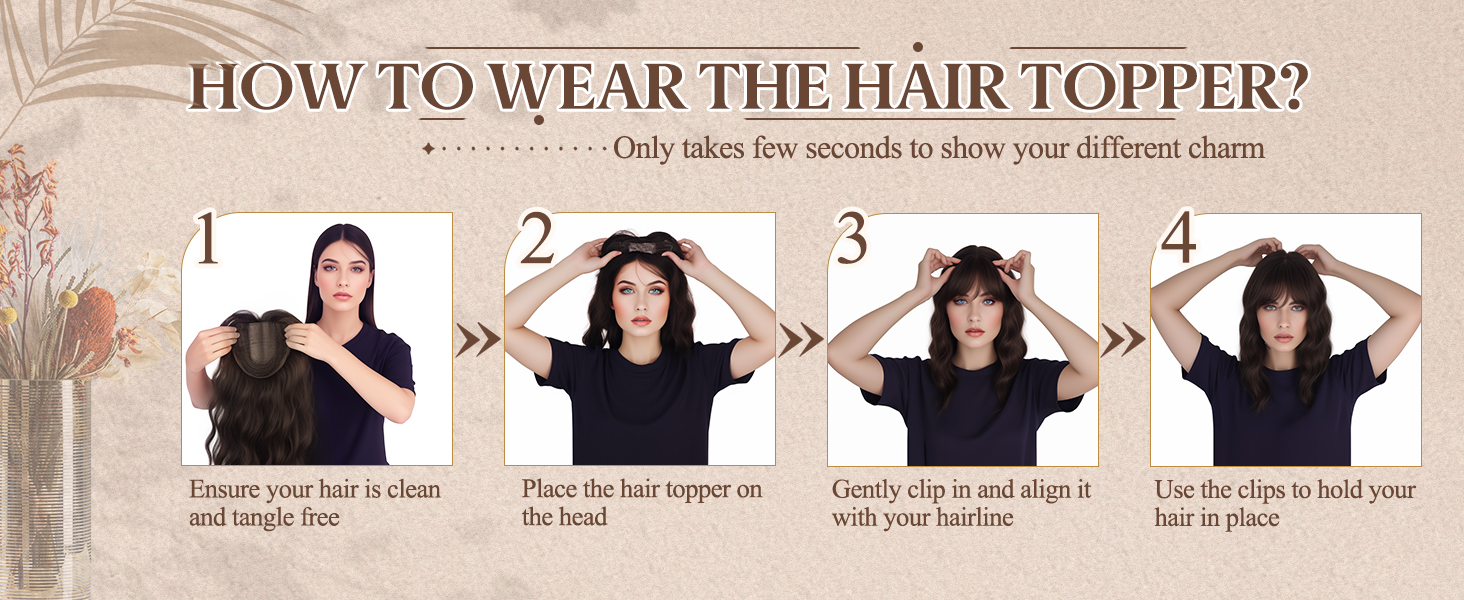 • Summer Breathable Natural Wavy Hair Topper With Bangs For Women With Thinning Hair