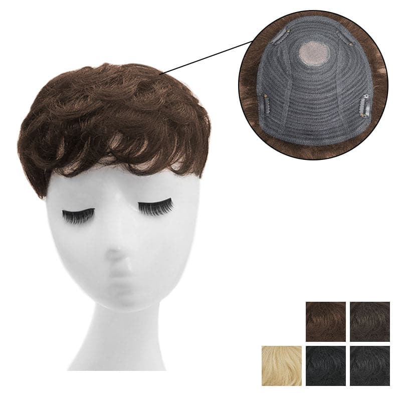 Short Pixie Addition Top Human Hairpiece For Balding Thinning Crown Clearance