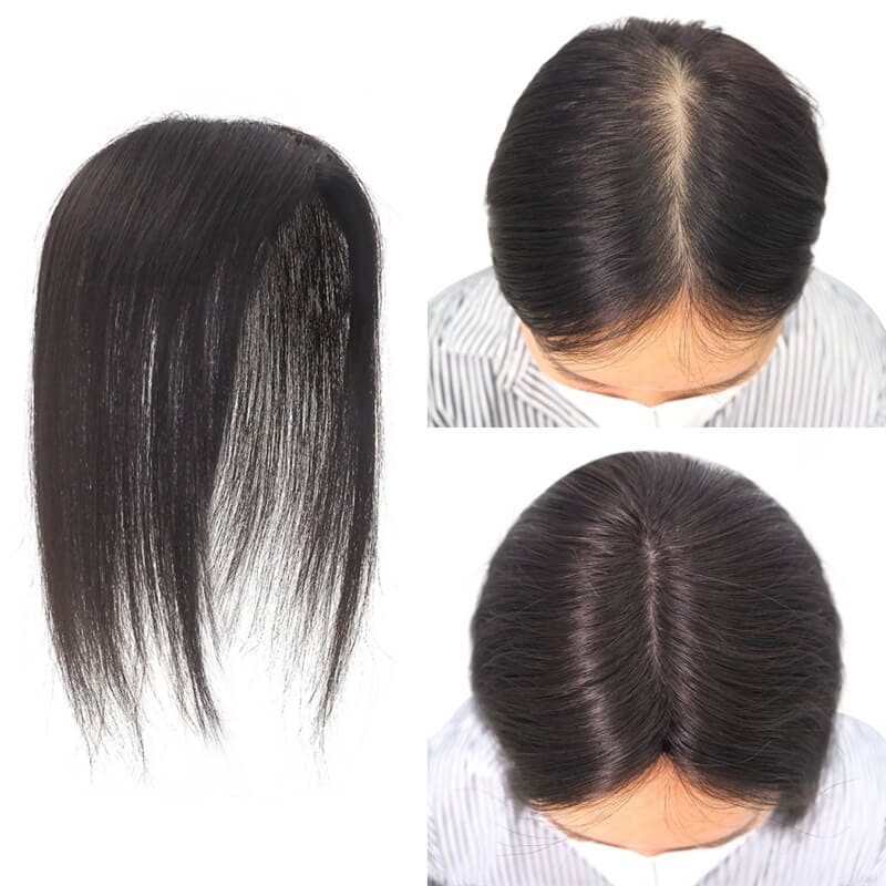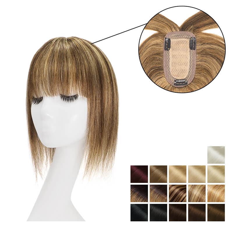 Human Hair Topper With Bangs 15*16cm Base All Shades