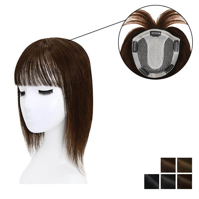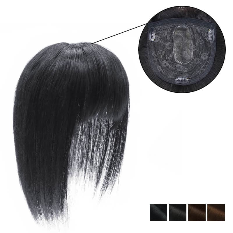 Human Hair Topper With Bangs For Women Hair Loss 13*13cm Silk Base All Shades