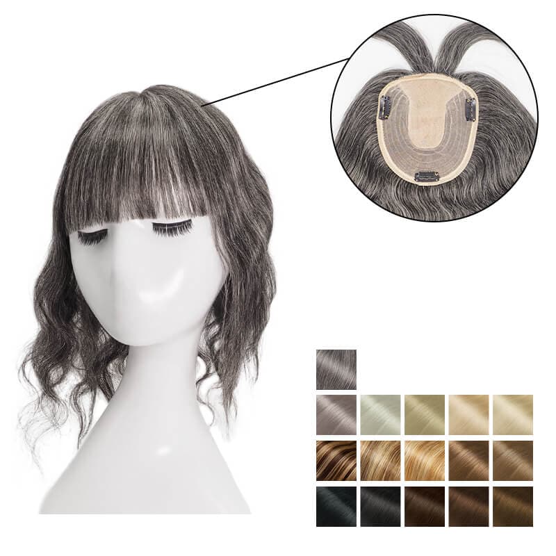 Susan ︳Wavy Human Hair Topper With Bang For Thinning Crown 10*12cm Silk Base All Shades