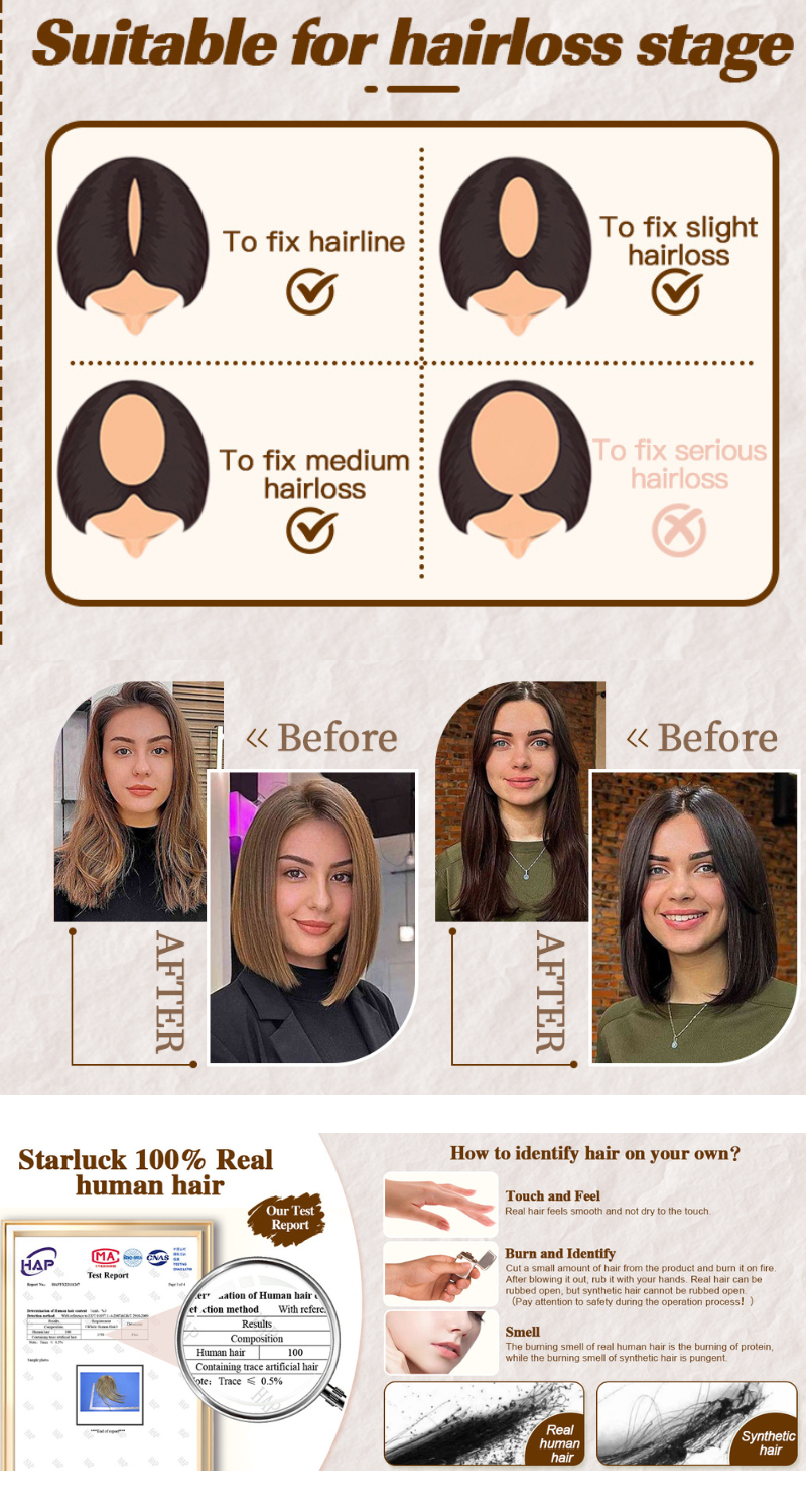 - Advantages: Natural, Invisible, Breathable and Can Be Trimmed, Perm, Washing